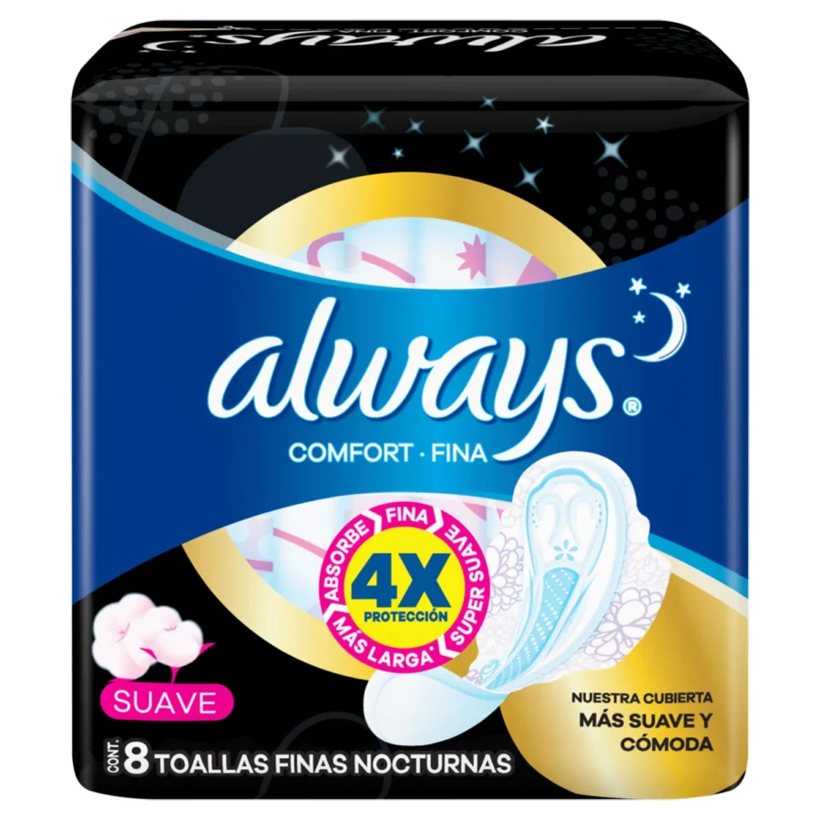Toallas Femeninas Always Maxi Noche Seca con Alas x8 unidades